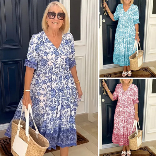 🔥【🔥1 kusy 700Kč】【S-5XL】 Nové elegantní dlouhé květinové šaty s výstřihem do V na rok 2026