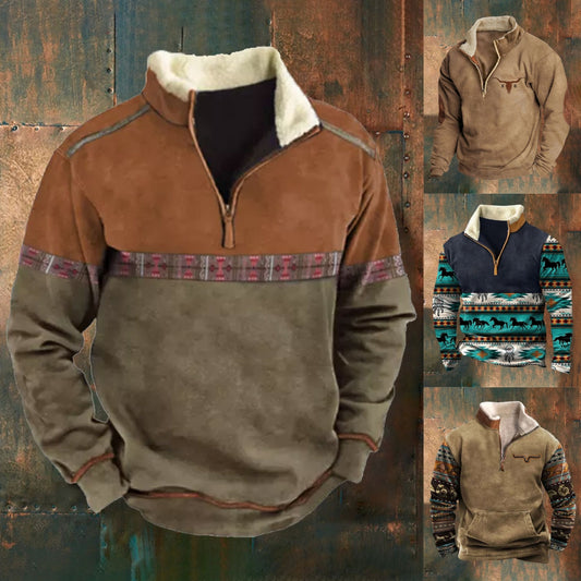 【S-4XL】2025 Есенно-зимен мъжки моден, топъл пуловер с дълъг ръкав и 3D щампа