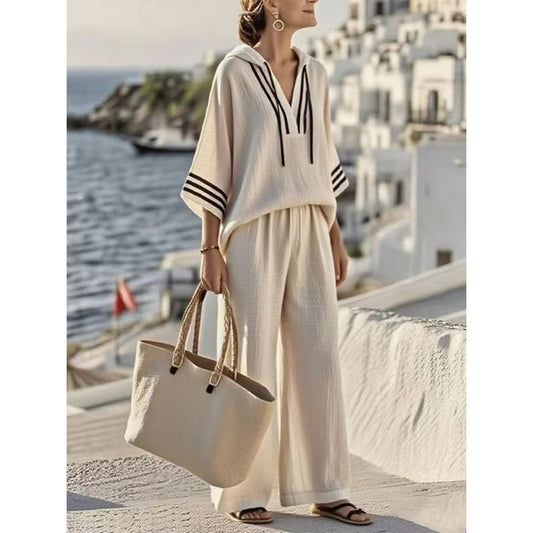 🔥Νέα καλοκαιρινή άφιξη! 😍2026 Νέο μοντέρνο γυναικείο παντελόνι χωρίς μανίκια με χρωματικές λεπτομέρειες και φαρδιά μπατζάκια - Καλοκαιρινό, casual, μοντέρνο σετ δύο τεμαχίων