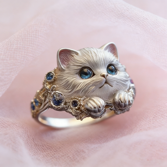 🎁😍🎁😍Dos artículos por solo 23 euros: un sencillo y elegante anillo de gatito de plata de ley 925 con incrustaciones de diamantes.