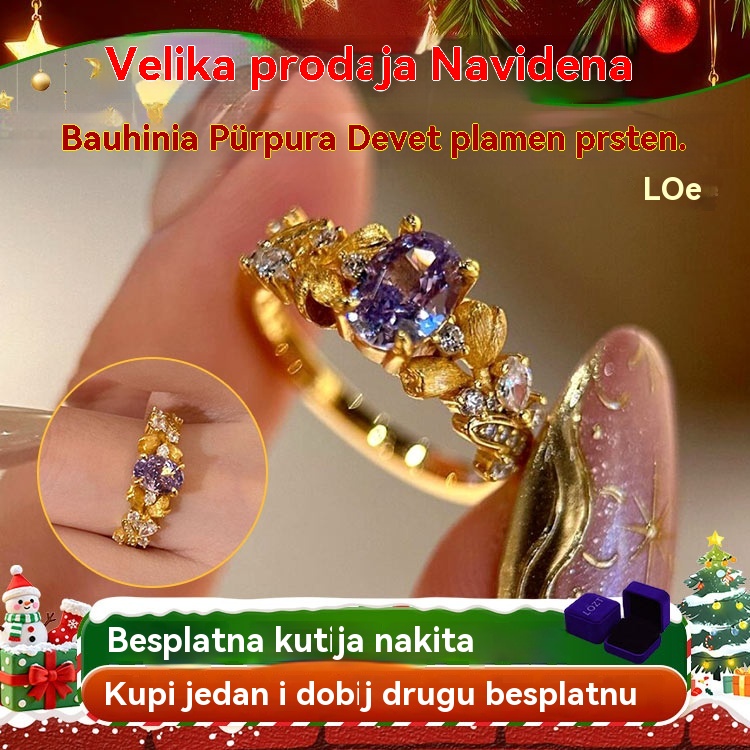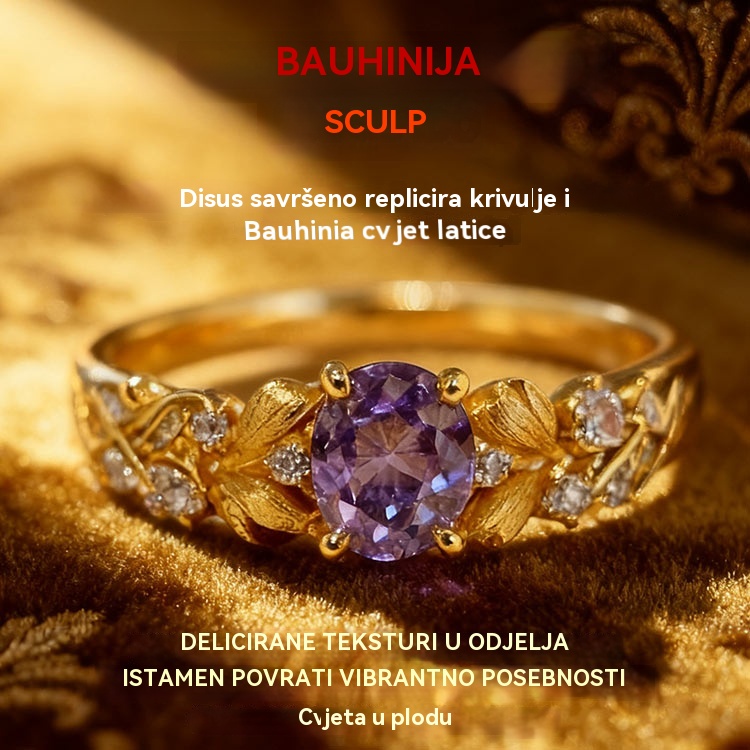 🌸💍Povoljni prsten od cvijeta Bauhinia za žene: luksuzan prsten s ljubičastim dijamantima-4177974