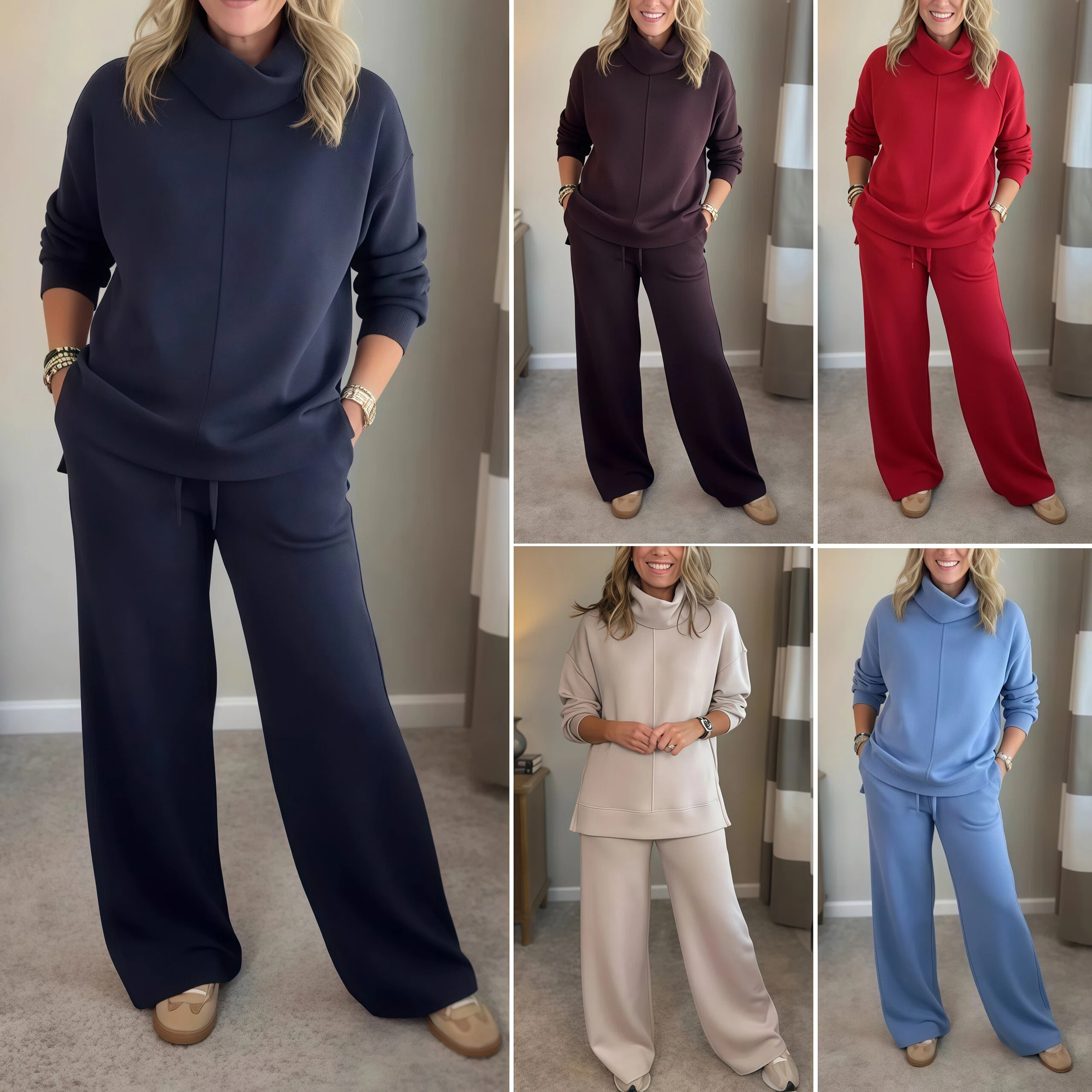 🍂🐏 【Új termék – Ideiglenes 50%-os kedvezmény】 Női két részes egy színű őszi/téli készlet: puhú pamut póló + szabadtűrő nadrágok-4182274