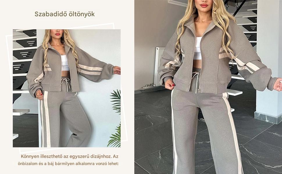 🔥🖤Női laza, zárójellel ellátott kabátok kiegészítő nadrággal, 2 darabos készlet🔥-4181665