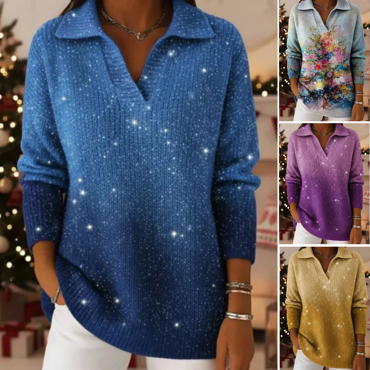 🔥【S-5XL】Csillámos Éjszaka mintaúttöltésű, rúddal ellátott fésűs pulóver-4180844