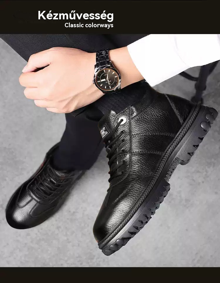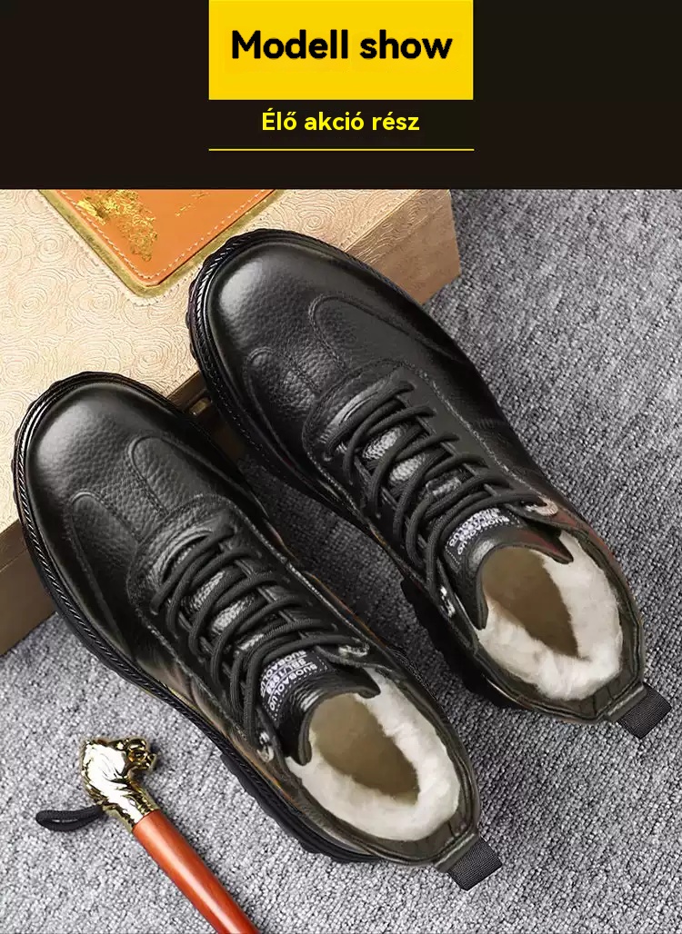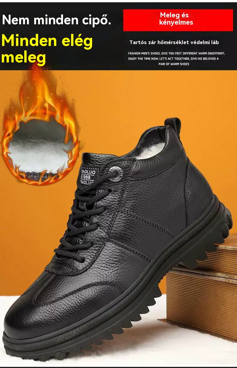 【39-44】Férfi téli cipők vastag bőrből és pamutból, gyapjú belsővel-4168584