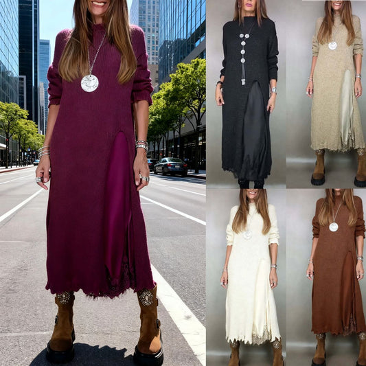 【XS-3XL】👗Nowy jesienny komplet koronkowy z rozcięciem i wzorem swetra-4163526