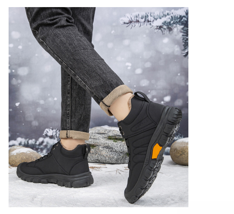 ❄️ Król Przeciwdziałania Mroźniom! Męskie Botki Śnieżne Na Wysokim Podnóżu O Luźnym Kroju, Bawełniane Buty Z Grubą Wełnianą Wstawką, Antypoślizgowe I Odporne Na Zużycie 🔥-4182418