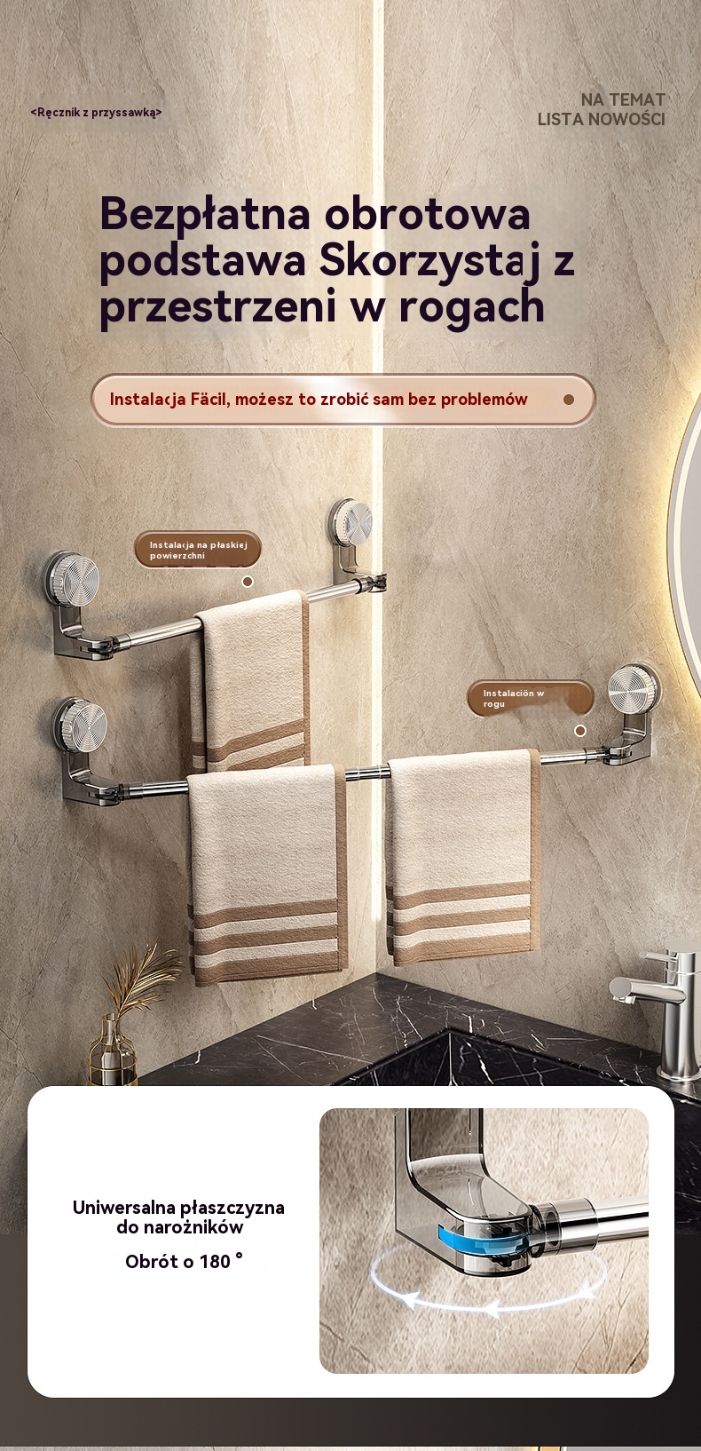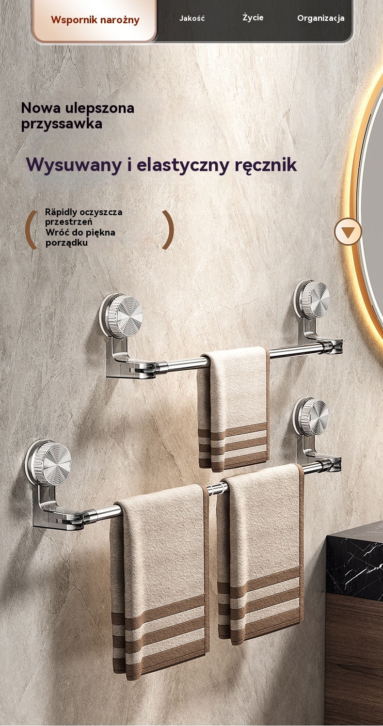 🎁✨🚿Prosty design bez wiercenia — wysuwny uchwyt na ręczniki z próżniowym ssakiem - 4229374