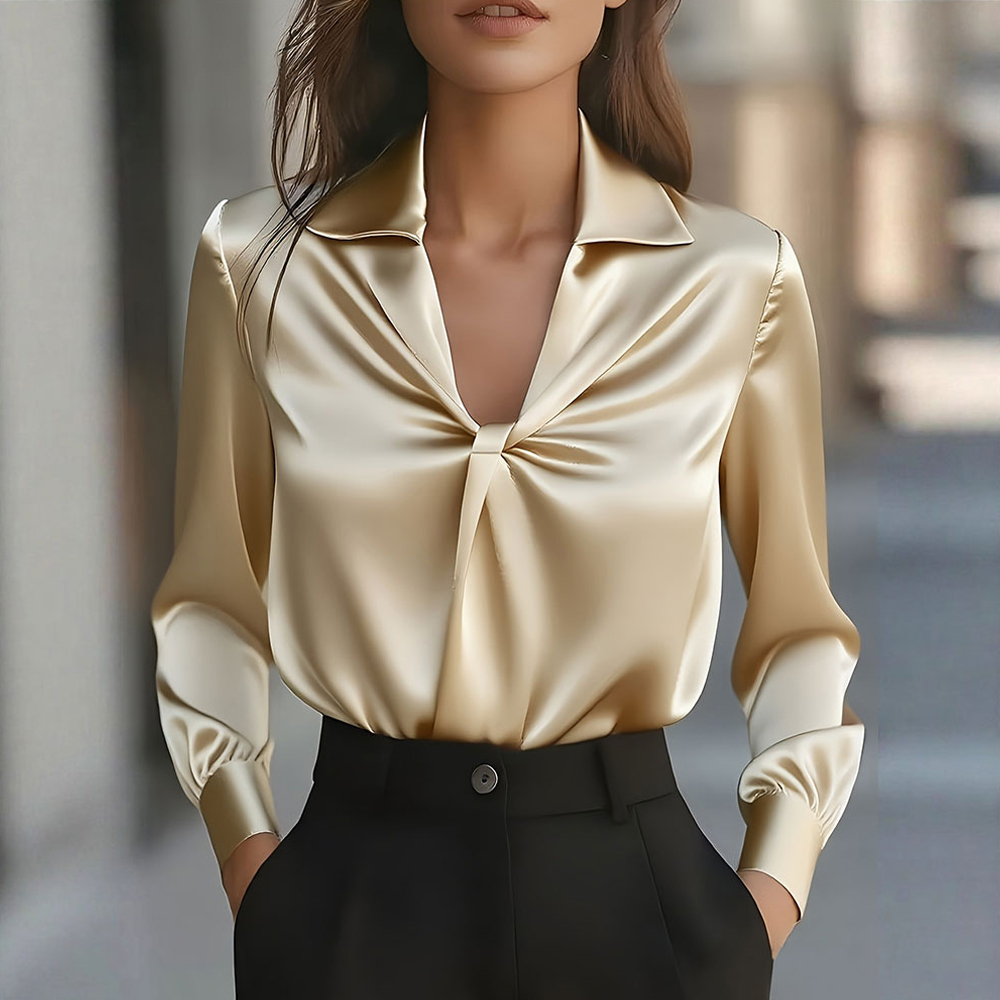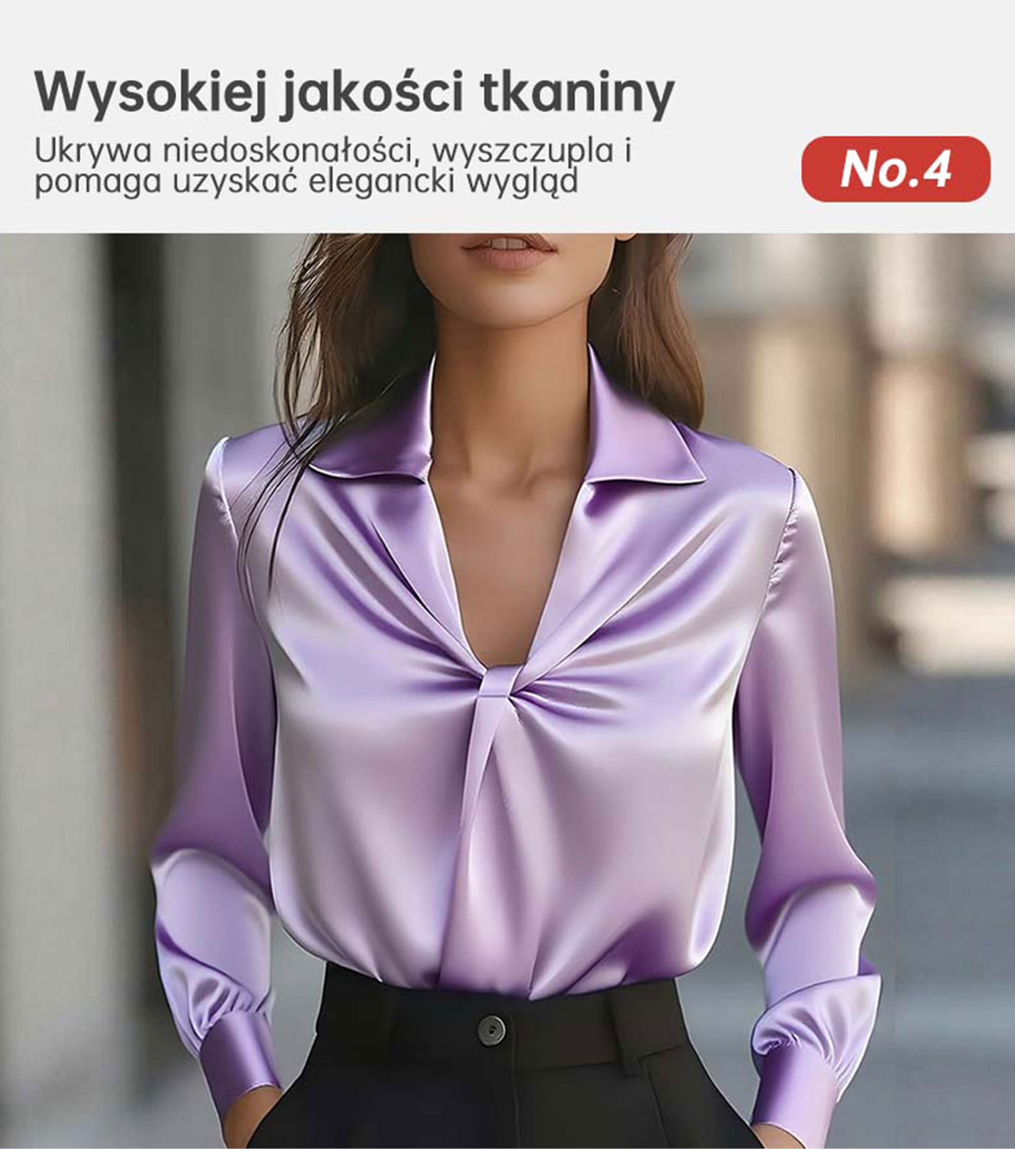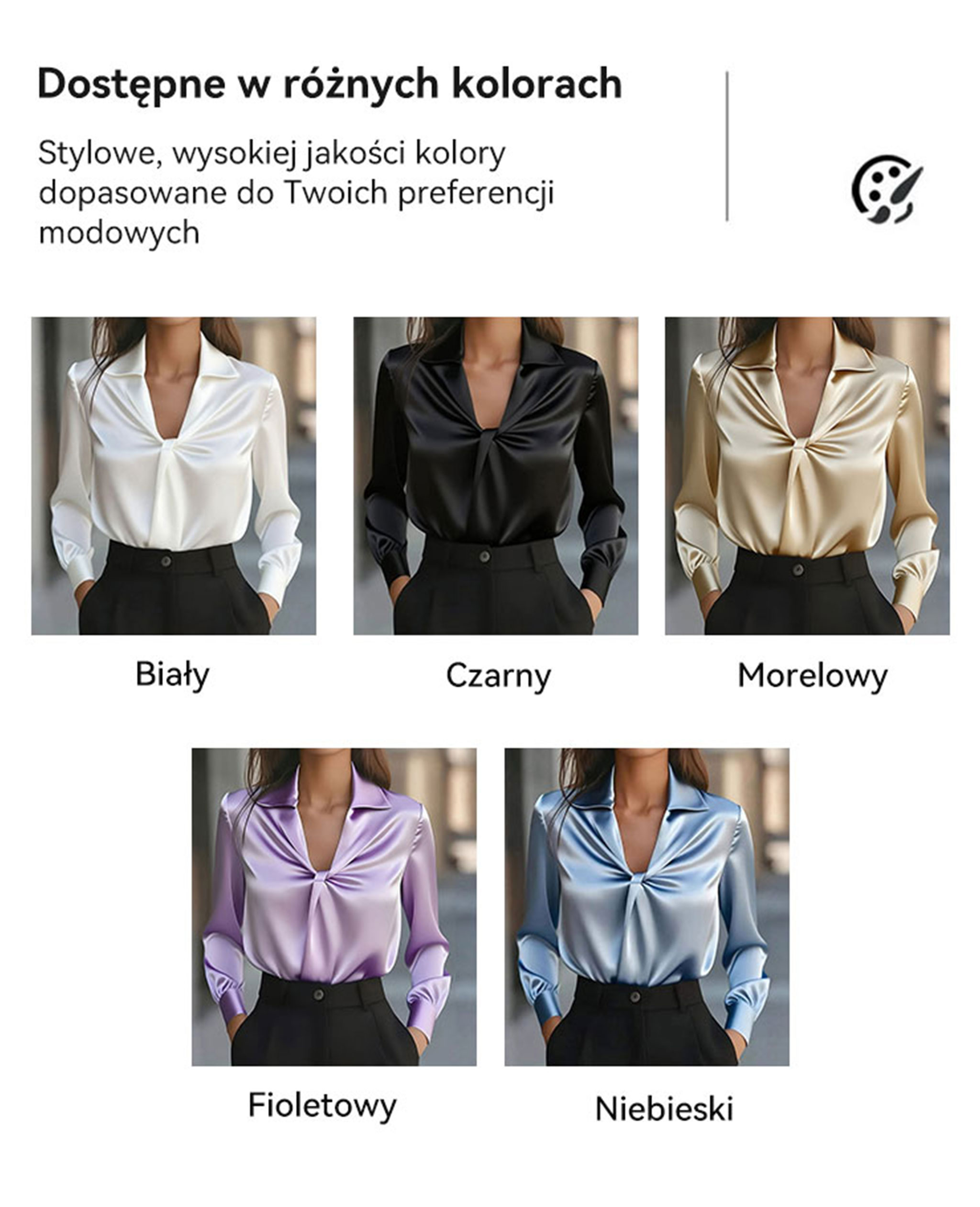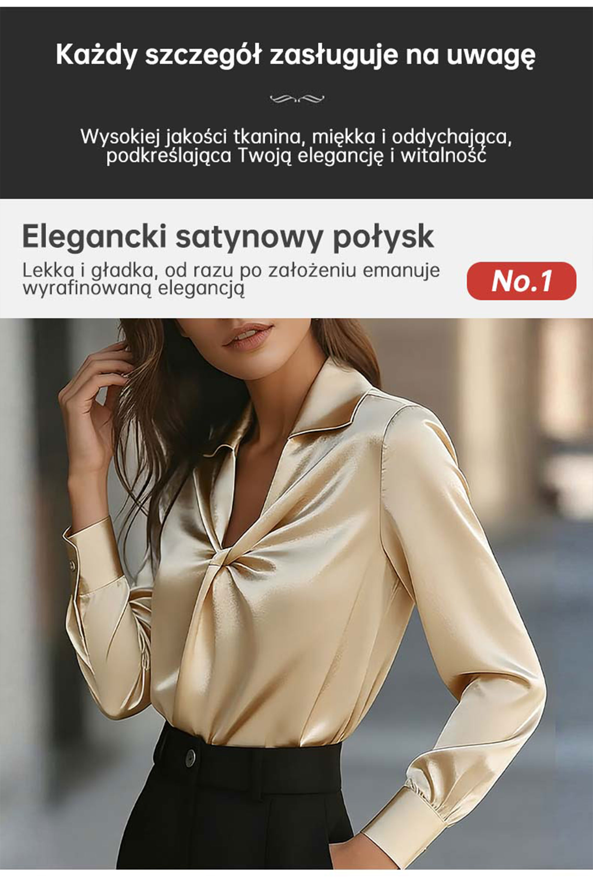 🔥**Damska Elegancka Jednokolorowa Koszulka z Satenu z Zgięciami, Długim Rękawem**🔥-4181760