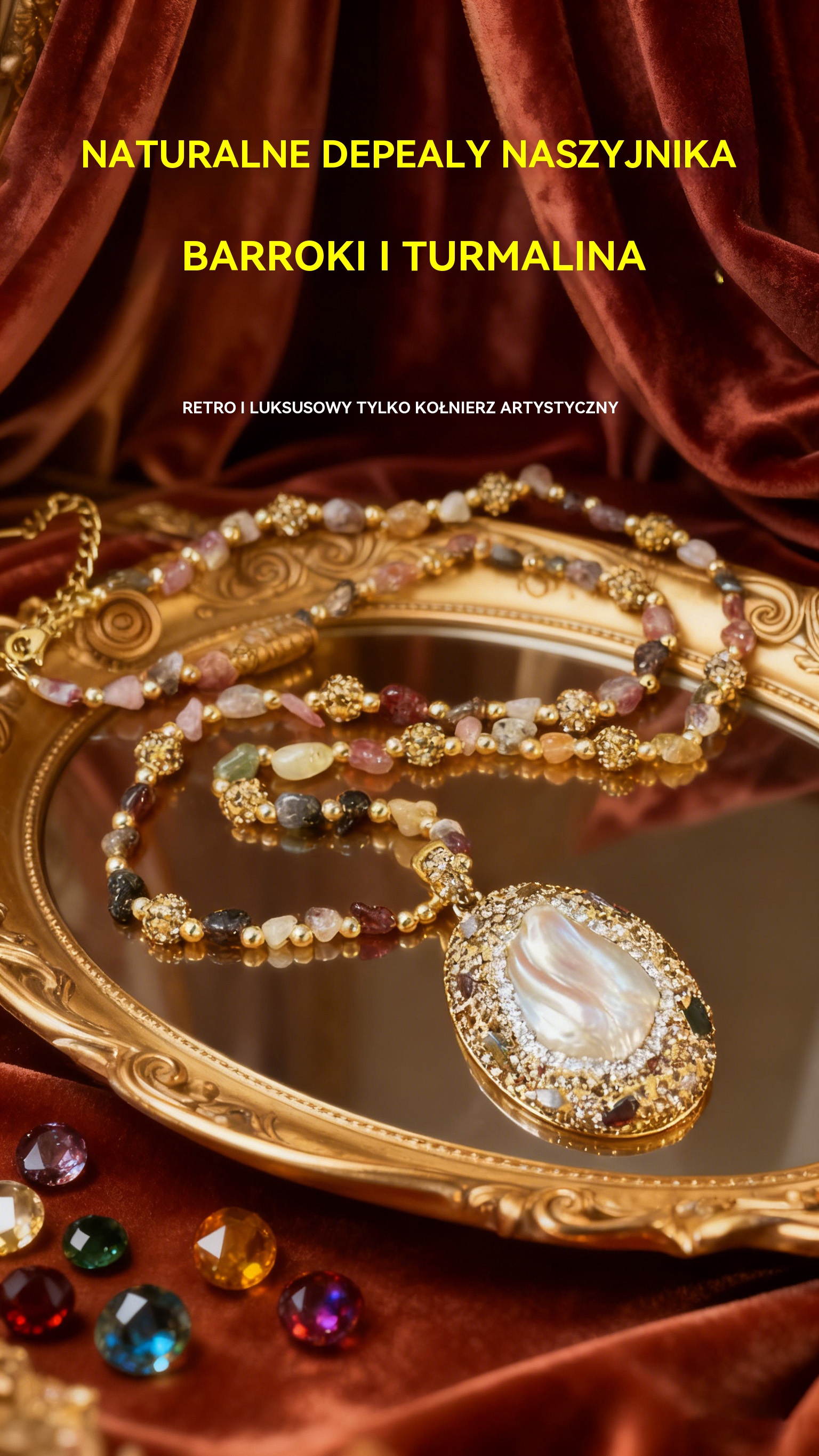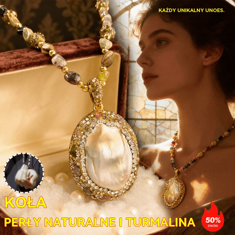 🔥【Promocja z ogniskiem!】 Ozdoba na kołnierz w stylu baroku z naturalnymi perłami i turmaliną-4165845