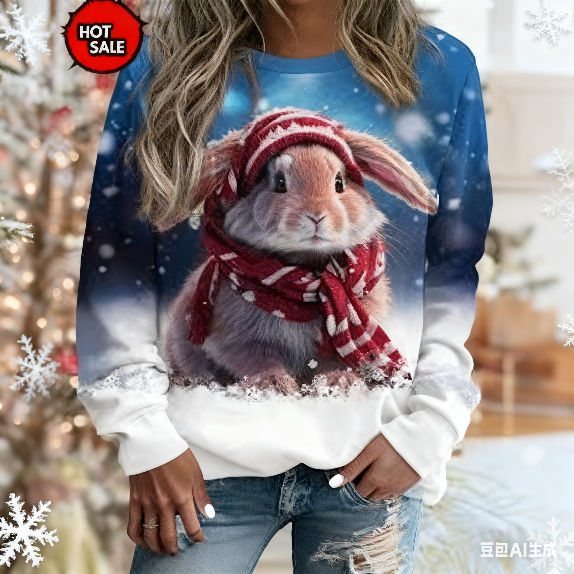 💖🐇2025 Nový vánoční svetr s kulatým výstřihem a 3D digitálním potiskem, měkký a pohodlný