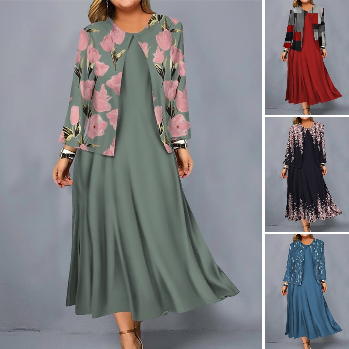💖【S-3XL】 2025 Nové šaty s květinovým potiskem Krátká bunda Módní ležérní oblek-3928995
