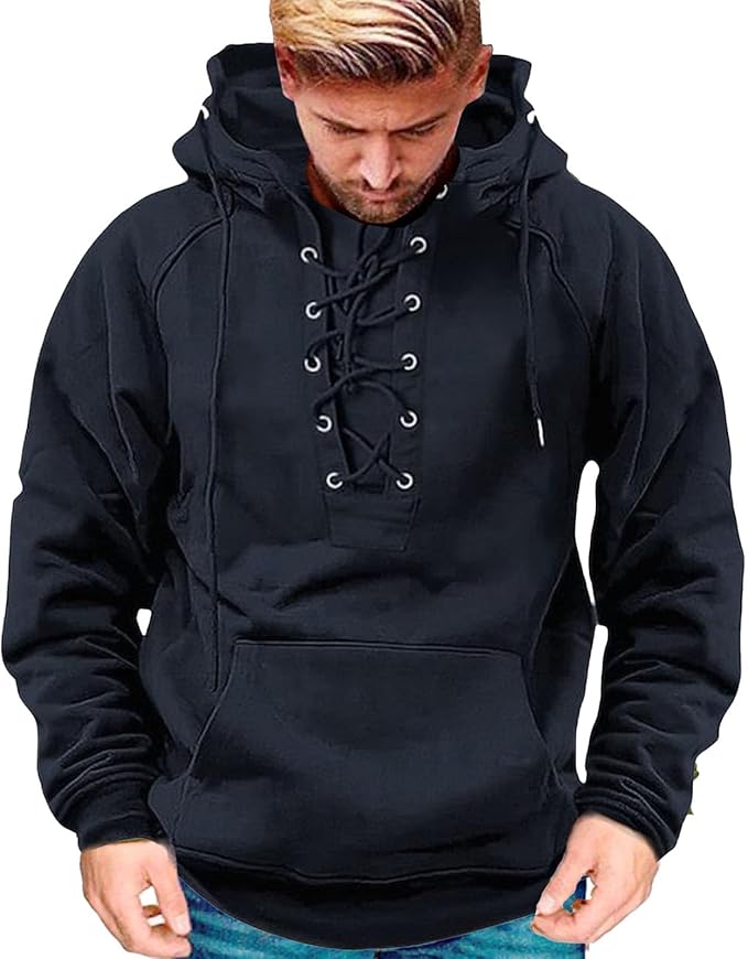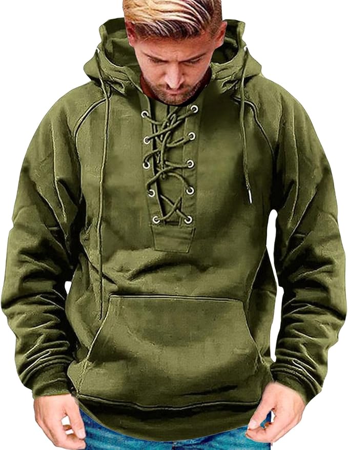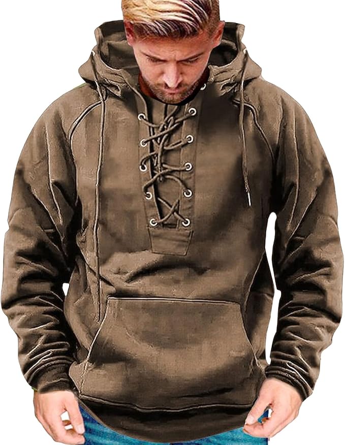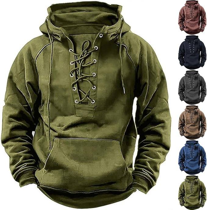 💥【S-3XL】Nová pánská retro mikina se stahovací šňůrkou a několika kapsami, volný svetr pro větší velikosti