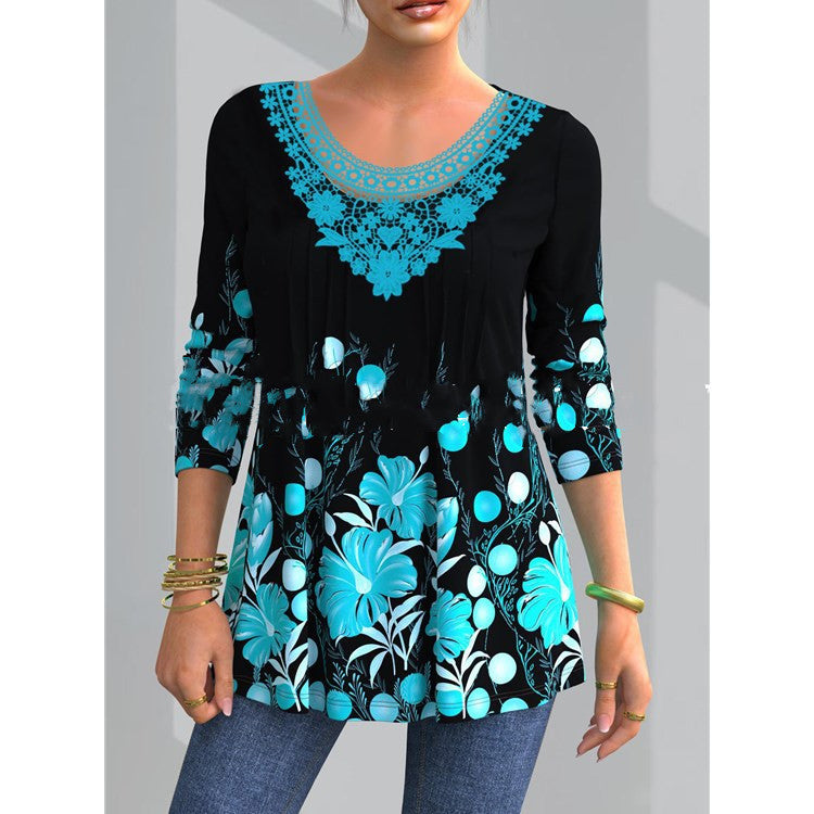 🔥🔥【S-5XL】Nové dámské módní tričko s dlouhým rukávem a vykrojenou krajkou ✅Dobírka