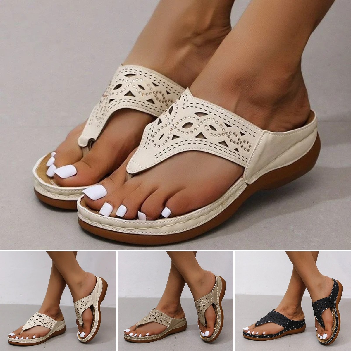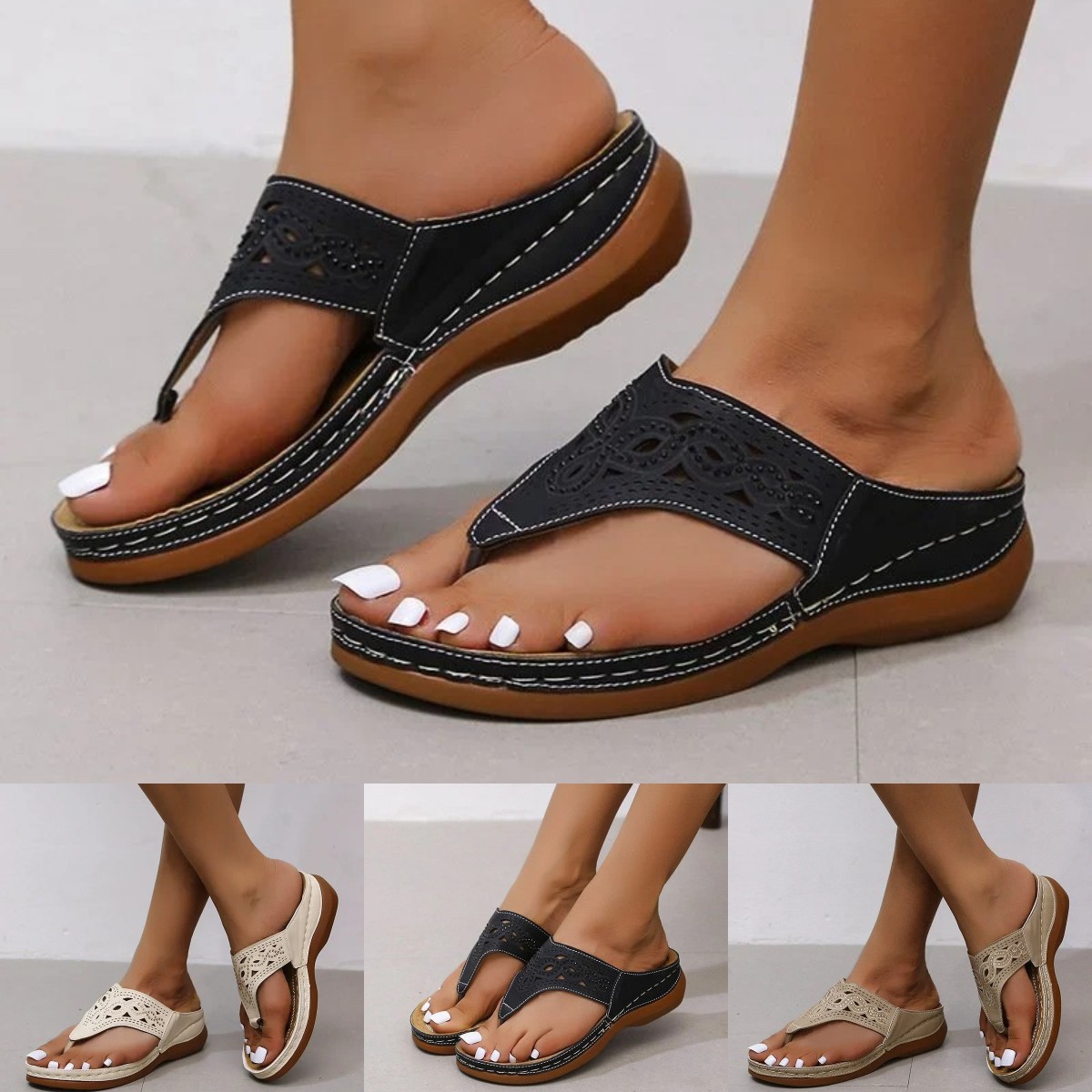 🔥【35-43】2024 Sandály nového stylu, žabky, dámské letní pantofle na klínku větší velikosti-3991003