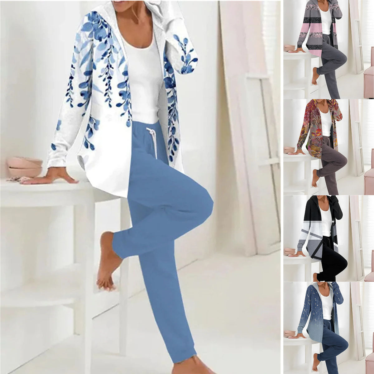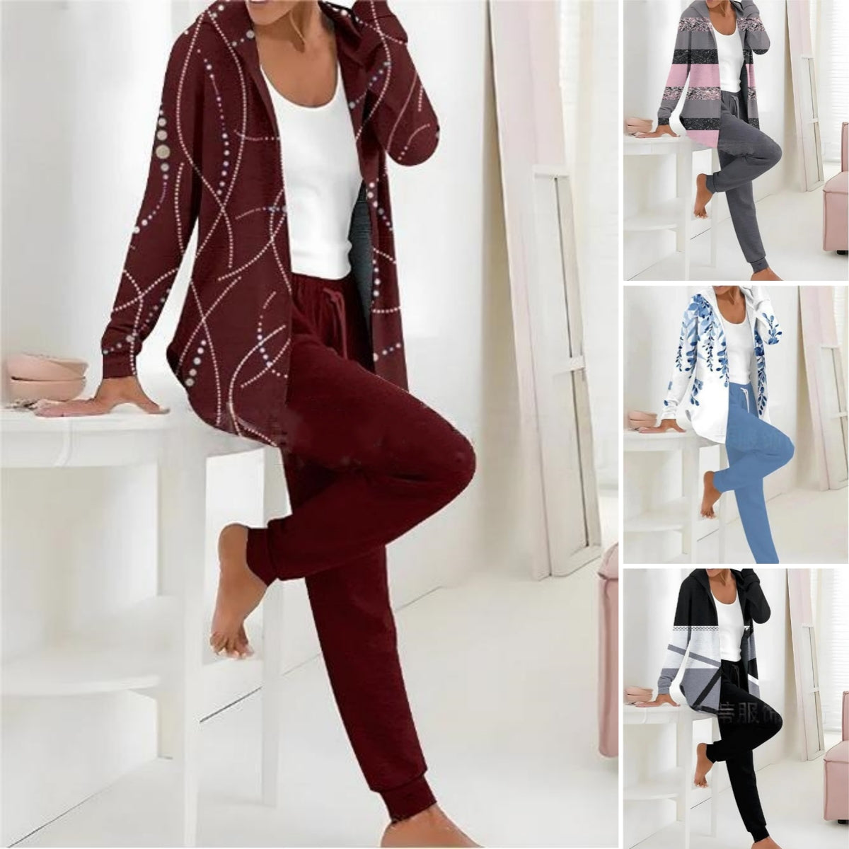 🔥【Časově omezená nabídka】🔥Podzimní zimní dámský dvoudílný potištěný oblek, kalhoty s dlouhým rukávem