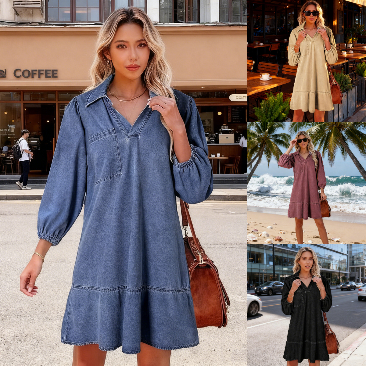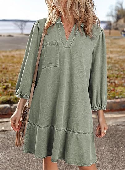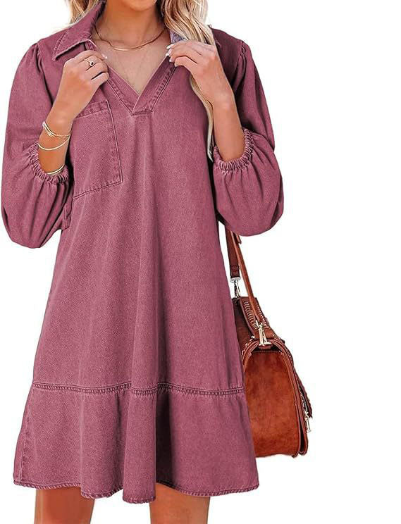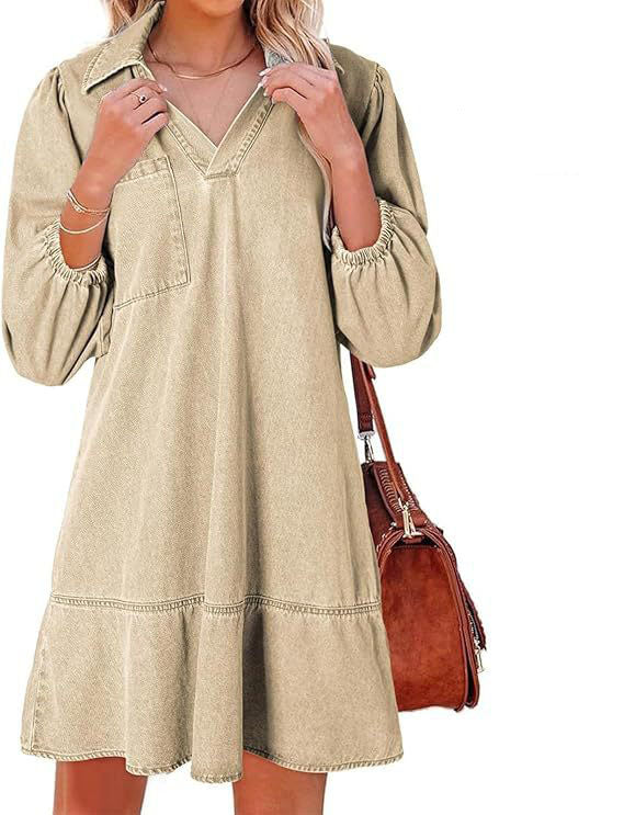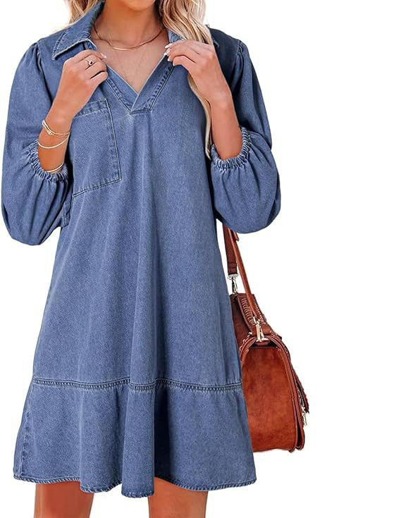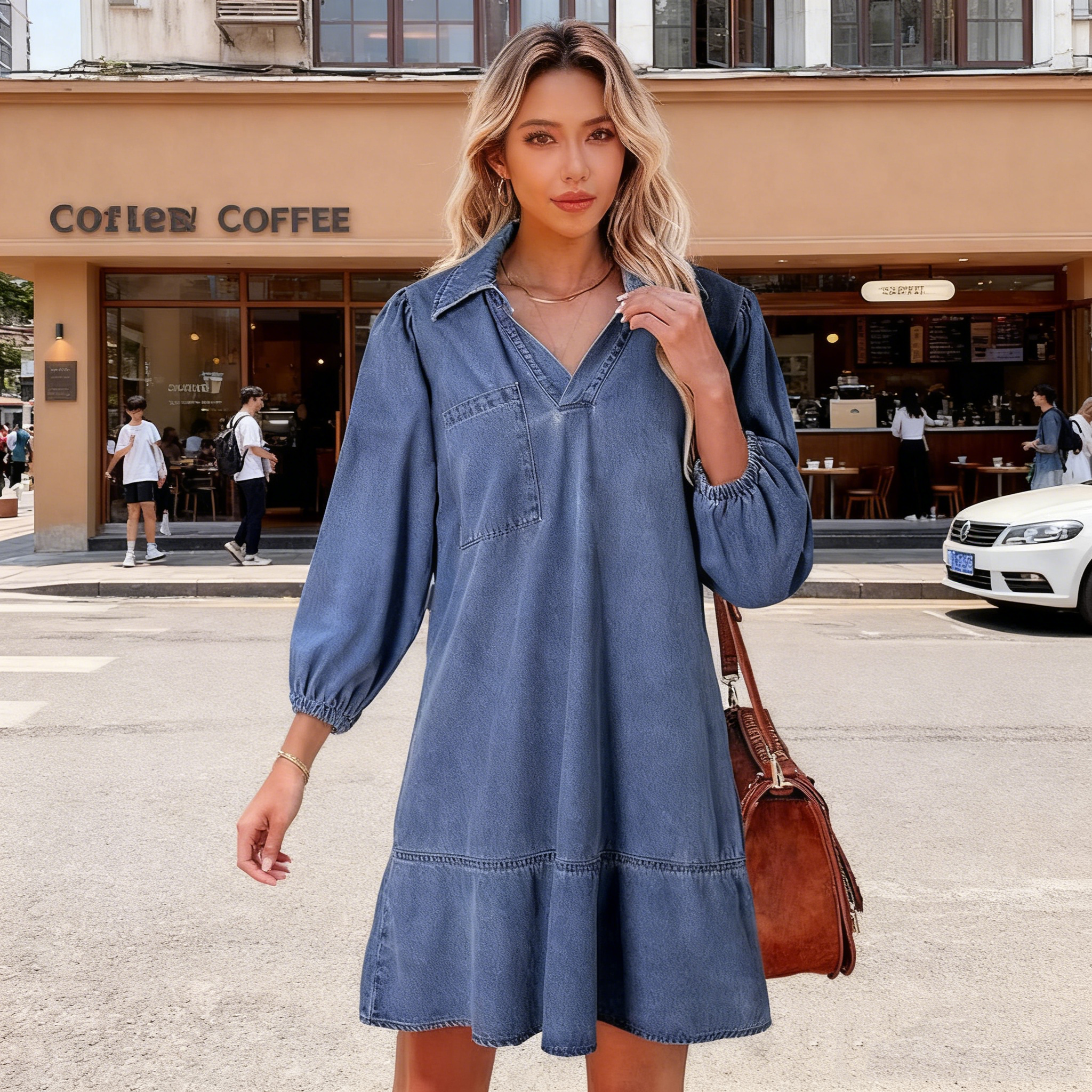 🔥🥰【S-3XL】🔥Nové volné džínové šaty s výstřihem do V