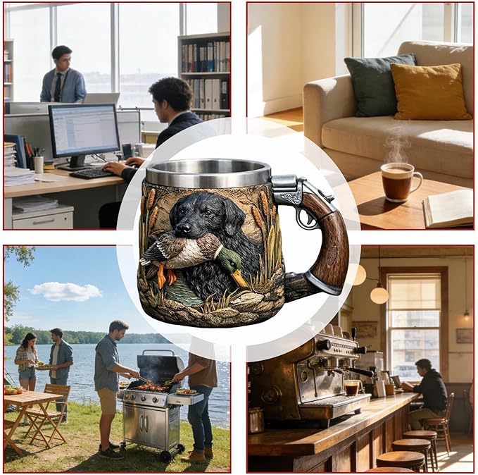 🔫☕350ml nerezový hrnek s motivem lovu psů a kachen s 3D motivem