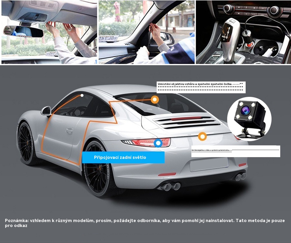 🚗🚗Nahrávejte v HD 1080p rozlišení zevnitř vozu pomocí couvací kamery.