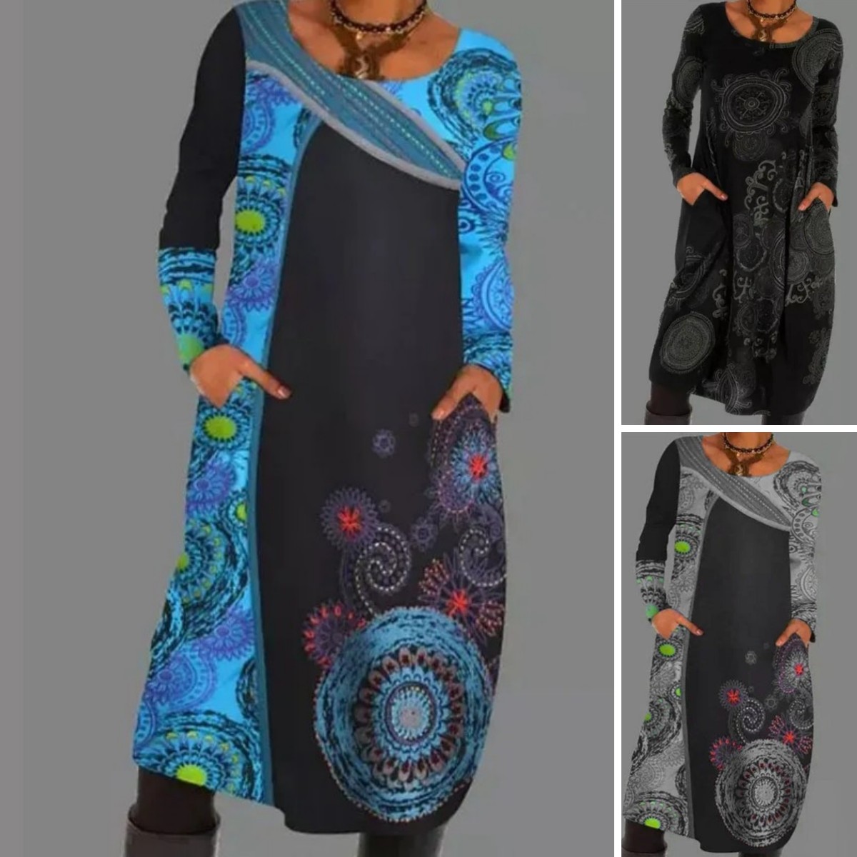 💟【45% OFF】【Kupte 1 kus, získejte 1 kus zdarma】Svetrové šaty s potiskem v etnickém stylu Dlouhá sukně-3916429