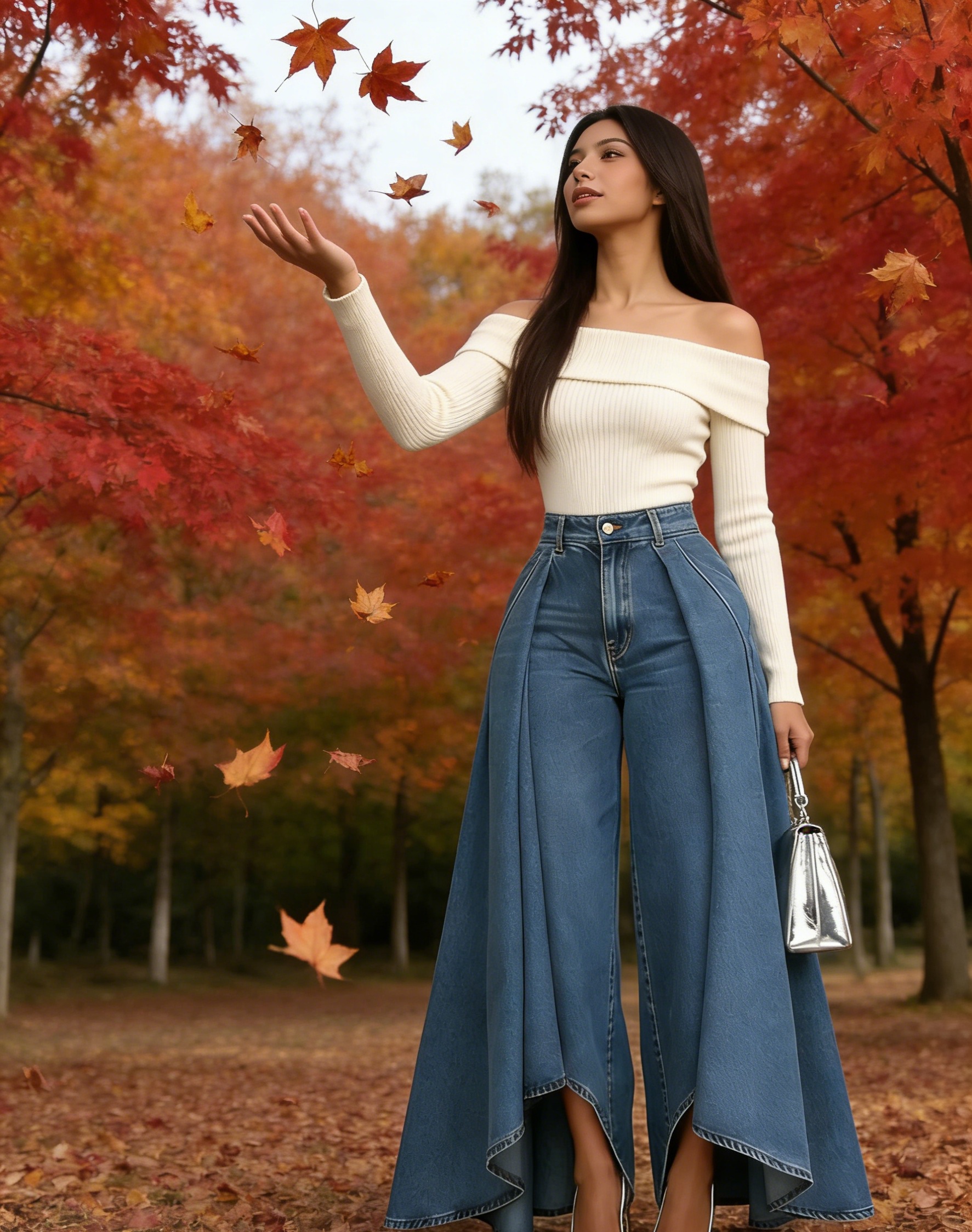 🥇【S-3XL】Dámské džíny s vysokým pasem a širokými nohavicemi, volný střih, elegantní design.