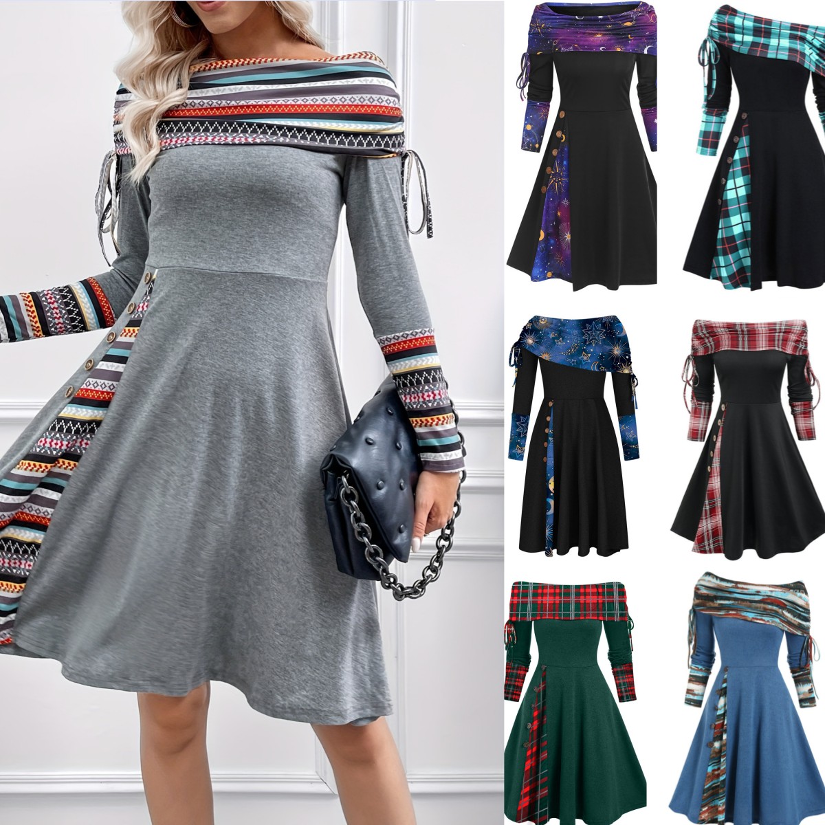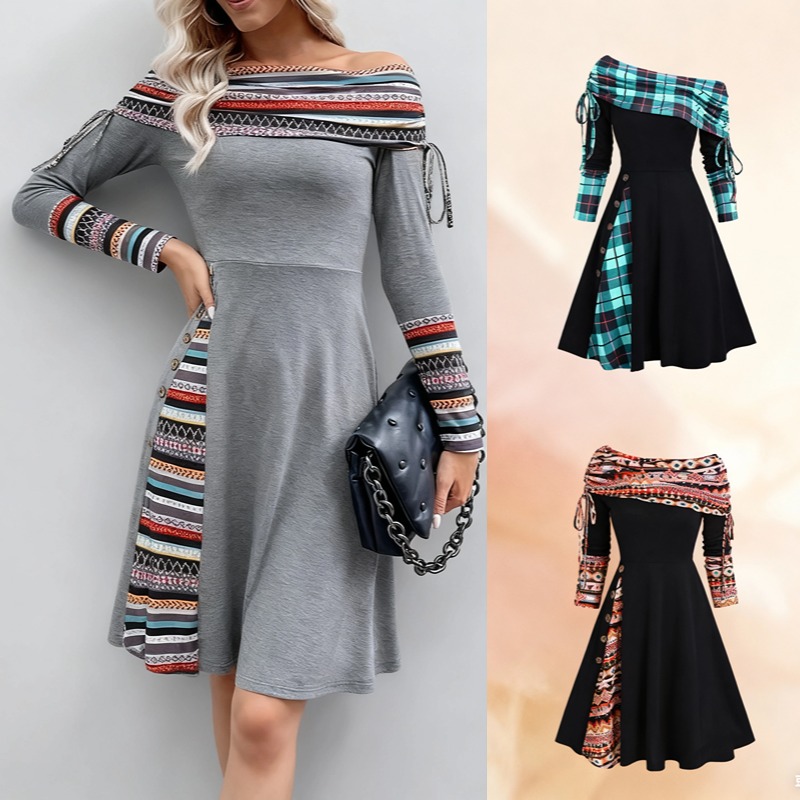 【S-3XL】Nový styl 2025 módní šaty s dlouhým rukávem a jedním ramenem pro ženy