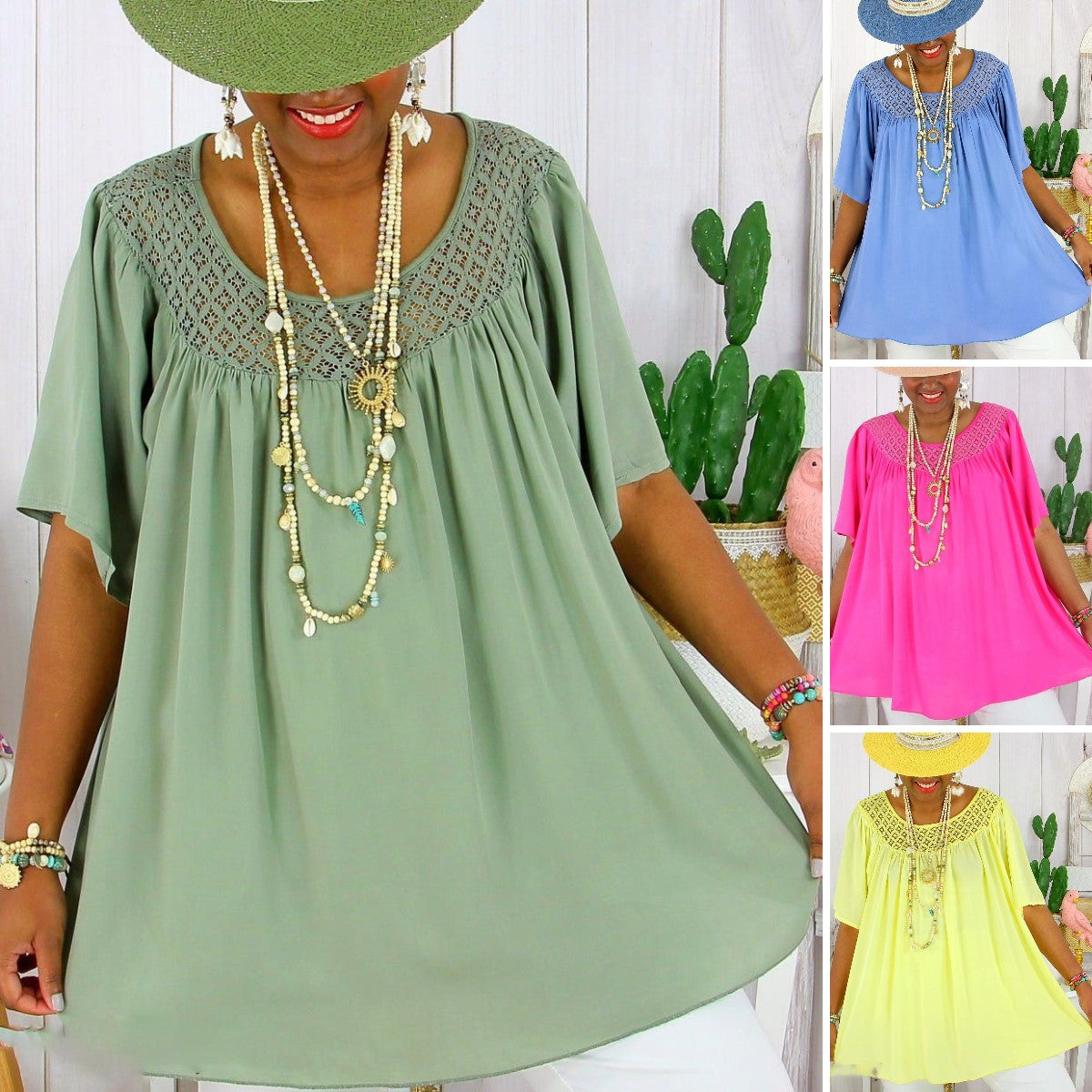 【XL-8XL】Dámské letní nové jednobarevné volné krajkové oblečení pro větší velikosti